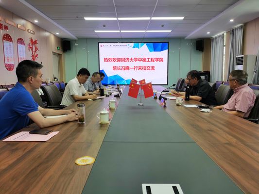 本网讯 6月16日,同济大学中德工程学院原院长冯晓教授、德国大众汽车有限公司沙洪和刘继平博士一行来访。我校机械工程学院院长王建平,电气工程学院(集成电路学院)党委书记杨会成、副院长林信南,国际处副处长朱铁军和张文明参加交流座谈。会议由朱铁军主持。