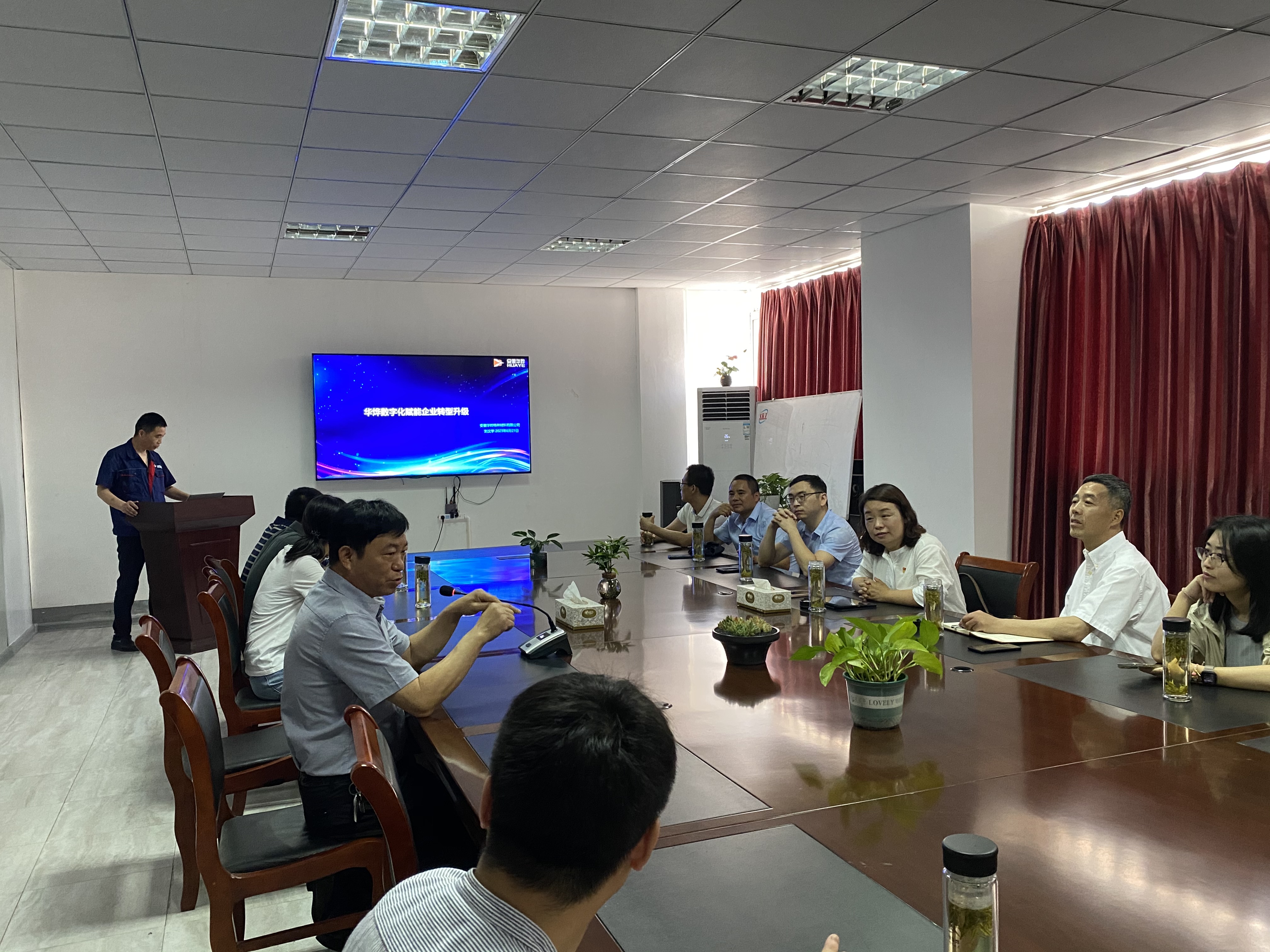 抵达后,一行人首先参观了华烨公司的工业互联网数智中心,讲解员详细介绍了华烨公司的发展历程、重点研发产品、智慧工厂建设等情况,并结合视频展示产品应用的多重场景。参观结束后,华烨公司刘文学做“华烨数字化赋能企业转型升级”的主题报告,围绕数字化转型的阶段性成果、转型过程中的痛点和转型升级对人才的需求等方面做了交流。