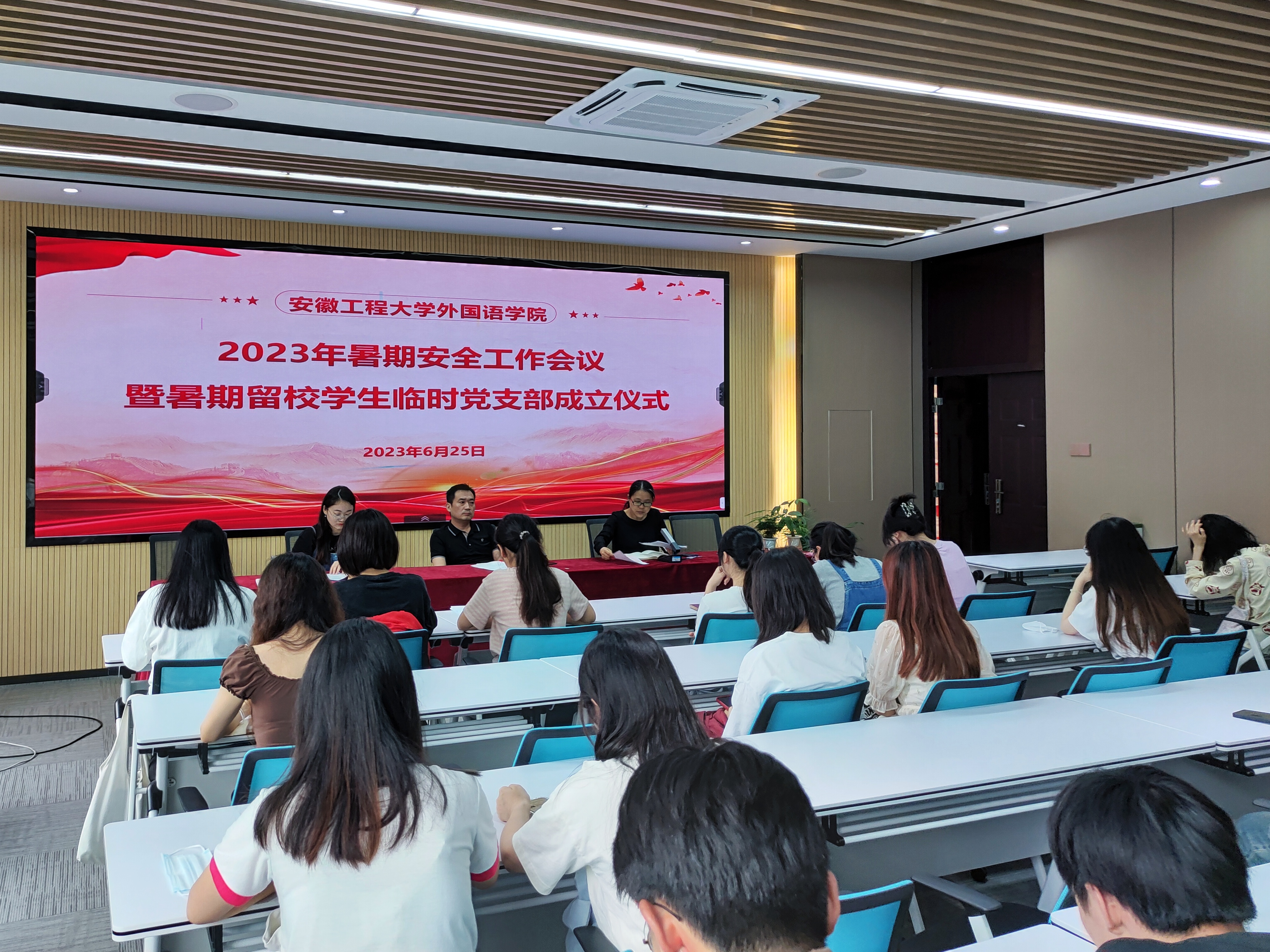 李校林宣读了学院党委关于成立暑期留校学生临时党支部的决定,从留校学生党员先锋“领航”作用发挥、留校学生宿舍管理制度、考勤管理制度、安全知识学习和安全意识提升、家校和师生联系互动等方面开展了详细的安全教育。