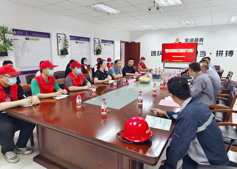 本网讯 为进一步学习贯彻习近平新时代中国特色社会主义思想主题教育,深入开展调查研究,加强基层党组织共建对接,推动主题教育走深走实,6月26日,化学与环境工程学院环境工程系学生党支部赴芜湖桑青生物科技有限公司开展“探寻餐厨废弃物‘ 绿色密码’”暑期社会实践活动。学院党委副书记胡承功、共建支部芜湖市生态环境保护综合行政执法支队党支部成员参加此次活动。