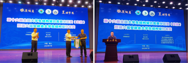 本网讯 7月3日至6日,第十六届全国大学生结构设计竞赛分区赛(安徽)暨第六届安徽省大学生结构设计竞赛在黄山市黄山学院举行。由我校推选的三支队伍参加赛事并取得二等奖1项,三等奖2项的优秀成绩。建筑工程学院院长曾磊担任赛事专家评委,副院长张金轮和土木工程系专业教师等参与学生竞赛指导和赛事考察。我校将承办下一届安徽省大学生结构设计竞赛。
