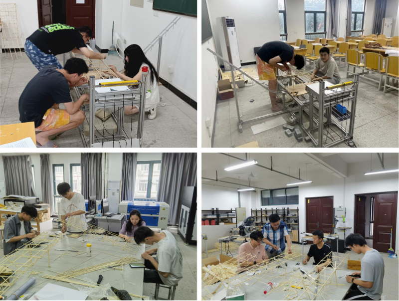 据悉,我校于6月3日举办结构设计竞赛校赛,并推选三支队伍代表我校参加本届省赛。在过去的一个月中,三支队伍精心准备,不断改进模型方案、完善制作手法、精简材料自重、追求模型极限。在本届省赛中,来自安徽省各个高校的队伍带来了多种桥梁模型的方案,包括桁架式、桁架梁组合式、张弦式、斜拉式、拱式、装配式等结构型式,在杆件加工、节点构造、竹材预处理、支座形式、预应力、预拱度等方面提出了很多创新的设计和工艺,并展现了高质量的制作水准。我校师生通过参加本届省赛,开拓了视野思路,学习了很多优秀作品的设计理念和制作手法,这将为我校队伍参加今后的结构设计竞赛提供宝贵的经验。