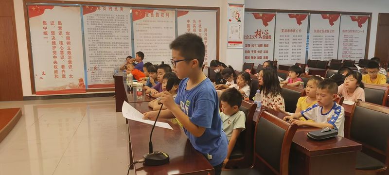 志愿队以朗诵经典名著为切入点,带领小朋友共同品味《读中国》。在诗词中欣赏“横撇竖捺”的方块字,小朋友懂得了共生共存的融合。通过学习朗读技巧,小朋友更好的揣摩了诗词作者的情感,增进了对传统诗词的理解。