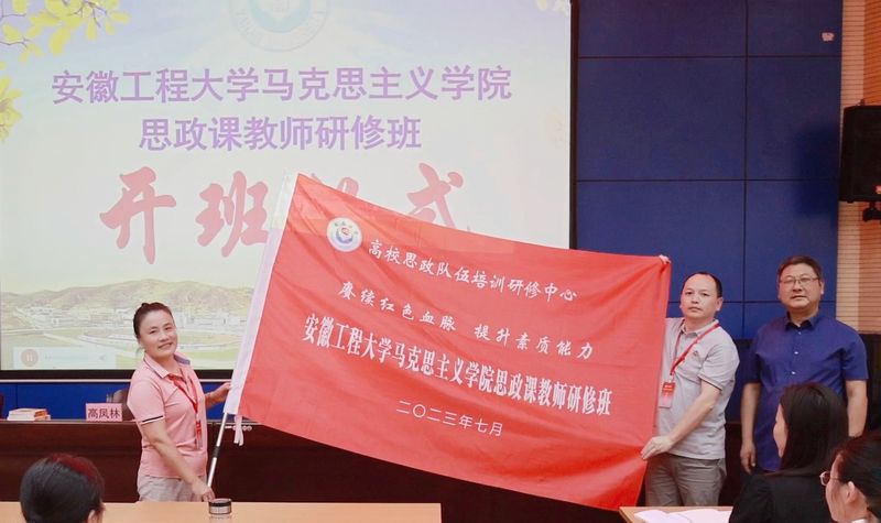 研修班开班式在庄严的国歌声中拉开帷幕。高校思想政治工作队伍培训研修中心(延安大学)办公室主任、马克思主义学院副院长高凤林出席并致辞。他向参加研修的全体思政课教师表示热烈欢迎,并简要介绍了延安大学的基本情况和教育部高校思想政治工作队伍培训研修中心(延安大学)的特色办学情况。刘伟作开班动员讲话。他指出,延安精神培育了一代代中国共产党人,是我们党的宝贵精神财富,学习延安精神,对于思政课教师而言,既是一次实践研修,也是一次党性教育。他要求,老师们带着初心使命从学习中汲取信仰的力量,严格遵守研修纪律,保质保量完成各项研修任务,在讲深讲透讲活思政课上下好功夫。开班式上,吴月红代表学院接受了本次研修班班旗。