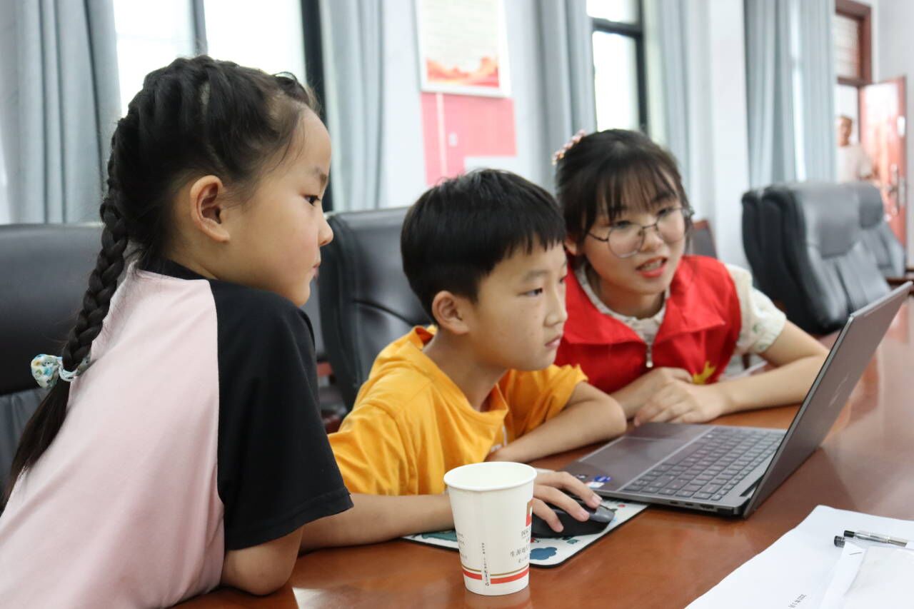 为提高乡村中小学生信息技术素养,引领学生接近信息科技、走进信息科技,团队结合专业特色,发挥专业优势,运用Scratch少儿编程对柳庄村的留守儿童进行一对一教学,帮助提高孩子逻辑思维能力。通过Scratch编程游戏启蒙、可视化图形编程的教学,培养少儿问题解决能力和创造力,在“玩”编程游戏的同时,让少年儿童们接触编程、喜欢科技。过程中,成员们注重引导少年儿童正确使用电子产品,正确对待电子游戏,教育中小学生要让科技成为助力而非阻力。智愿舞梦小分队通过村委的帮助和支持,为学生的兴趣爱好搭建展示平台,让孩子们伴随着键盘的旋律,放飞七彩梦想。