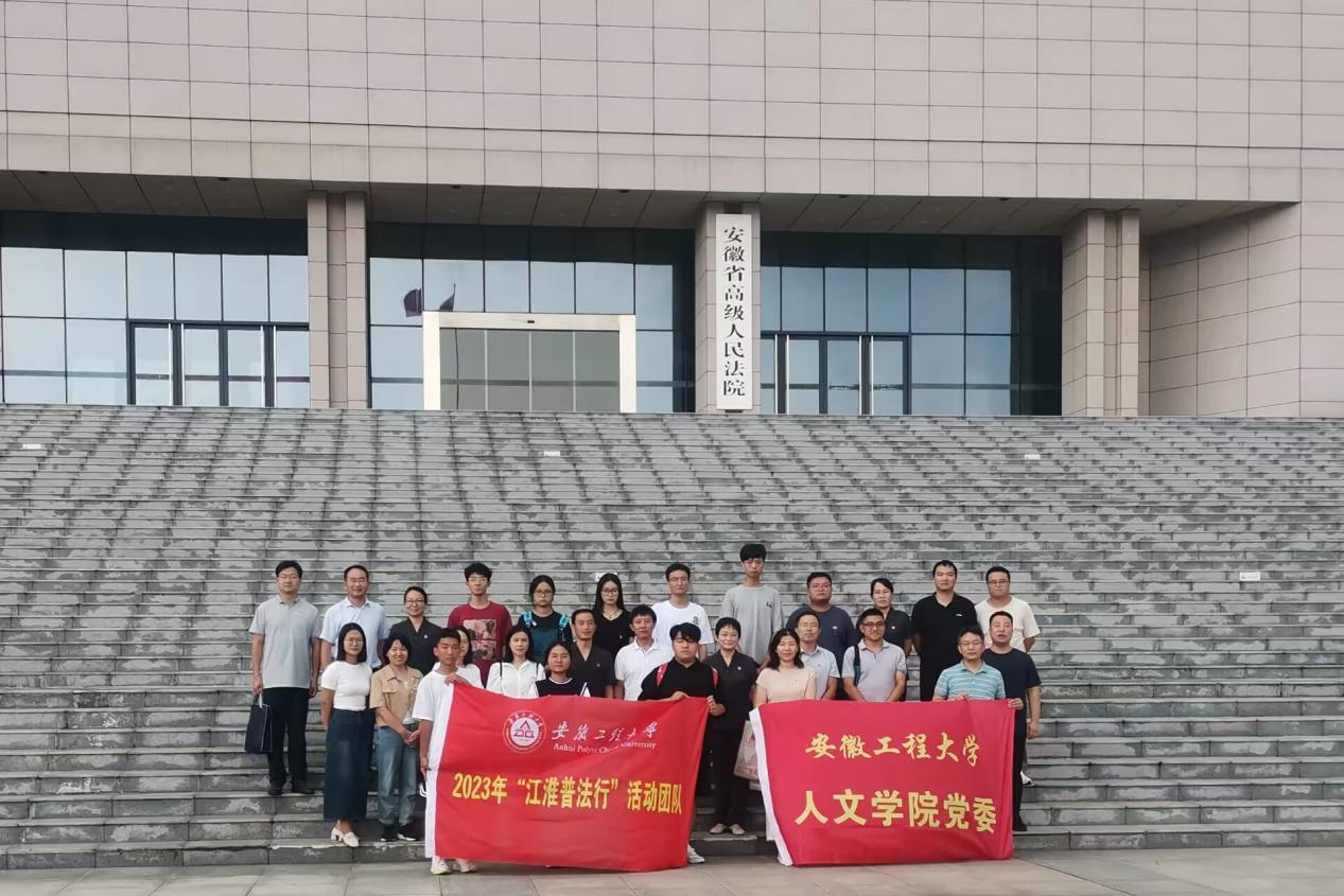 在安徽省高级人民法院,王怀正和法官们热情接待了人文学院师生一行。人文学院与省高院执行局进行了“法治共建座谈会”,王怀正和王中江分别代表执行局和人文学院介绍了省高院(执行局)和安徽工程大学(人文学院)的基本情况,表达了双方进行法治共建的愿景;省人大代表贾文友介绍了人大代表履职相关情况并对省高院工作提出了建议。王怀正结合自身实际工作经历回答了法律学习、未来职业发展、法官遴选的条件和要求、法律工作准则等同学们提出的问题。在此基础上,参会同学与法官们展开了交流,并进行了“法院廉政文化建设的安徽实践”“法官的政治素养与业务素养高效结合的方法”等普法专题座谈(调研)活动。