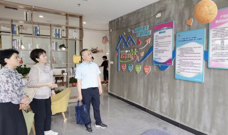 唐成一行来到我校建设的4个户外劳动者服务站、工会驿站实地考察。工会主席张寅红简要介绍了我校工会驿站建设的基本情况。唐成一行围绕工会驿站功能定位、选址布局、设备设施、日常管理等提出指导意见,对我校高度重视工会驿站建设的成效给与充分肯定。
