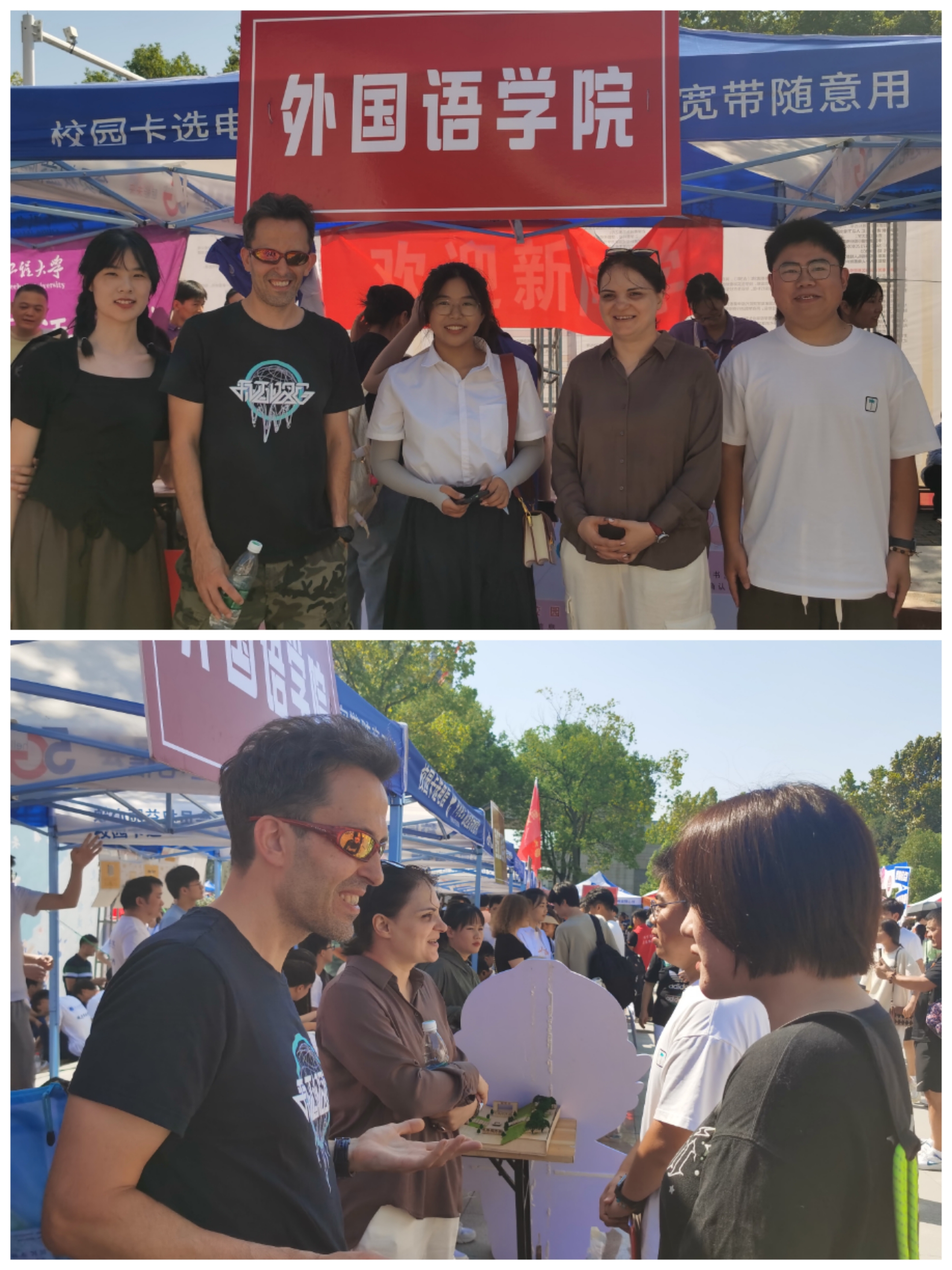 今天学院特意安排英语专业外籍老师Michael和Sophia到迎新现场,与学生进行口语交流,送来关爱的同时,把“学好英语口语,传播中华优秀文化”的种子从入学就植入学生的心中,引导广大新生“学”起来。两位老师一直鼓励同学们开口交流,她们一直用英语鼓励同学们:“你们要学好语言,利用语言媒介向其他国家传播中国优秀文化,讲好中国故事”。不少新生也从一开始的害羞变得自信起来,在开口之后他们也逐渐发现只要大胆开口,勇于尝试表达,外教也能理解他们的意思。