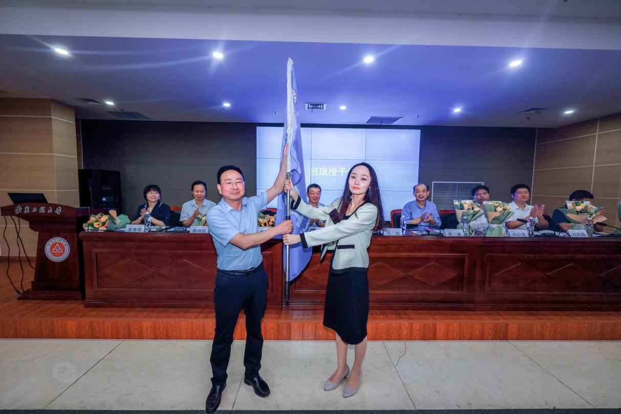 会上,学术导师章秀琴教授和首届MBA班刘宇辰同学分别作为教师代表和MBA新生代表发言。经济与管理学院院长龚本刚向“首届MBA班”班授旗。