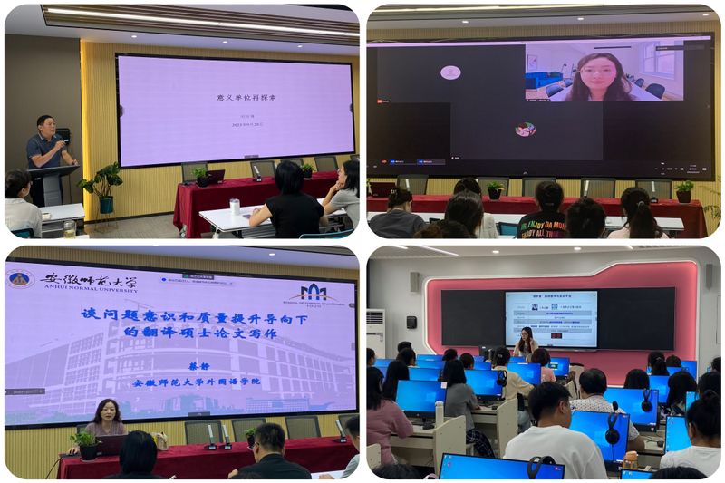 本网讯 9月20日,2023年安徽省语料库与翻译技术研讨会在我校9教209会议室召开,本次研讨会由我校外国语学院、科技处、研究生部承办,采用线上和线下相结合的方式。大会邀请了翻译实战和语料库研究专家为本次研讨会做主题学术讲座,近200人次参加了研讨会。