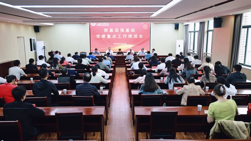 本网讯 9月22日,学校“抓基层强基础”党建重点工作推进会在A座1314会议室召开。组织部、研工部、学工部、校团委主要负责人,各二级学院党委副书记,全体组织员,党支部书记代表参加会议。校党委副书记苏国红出席会议并讲话。