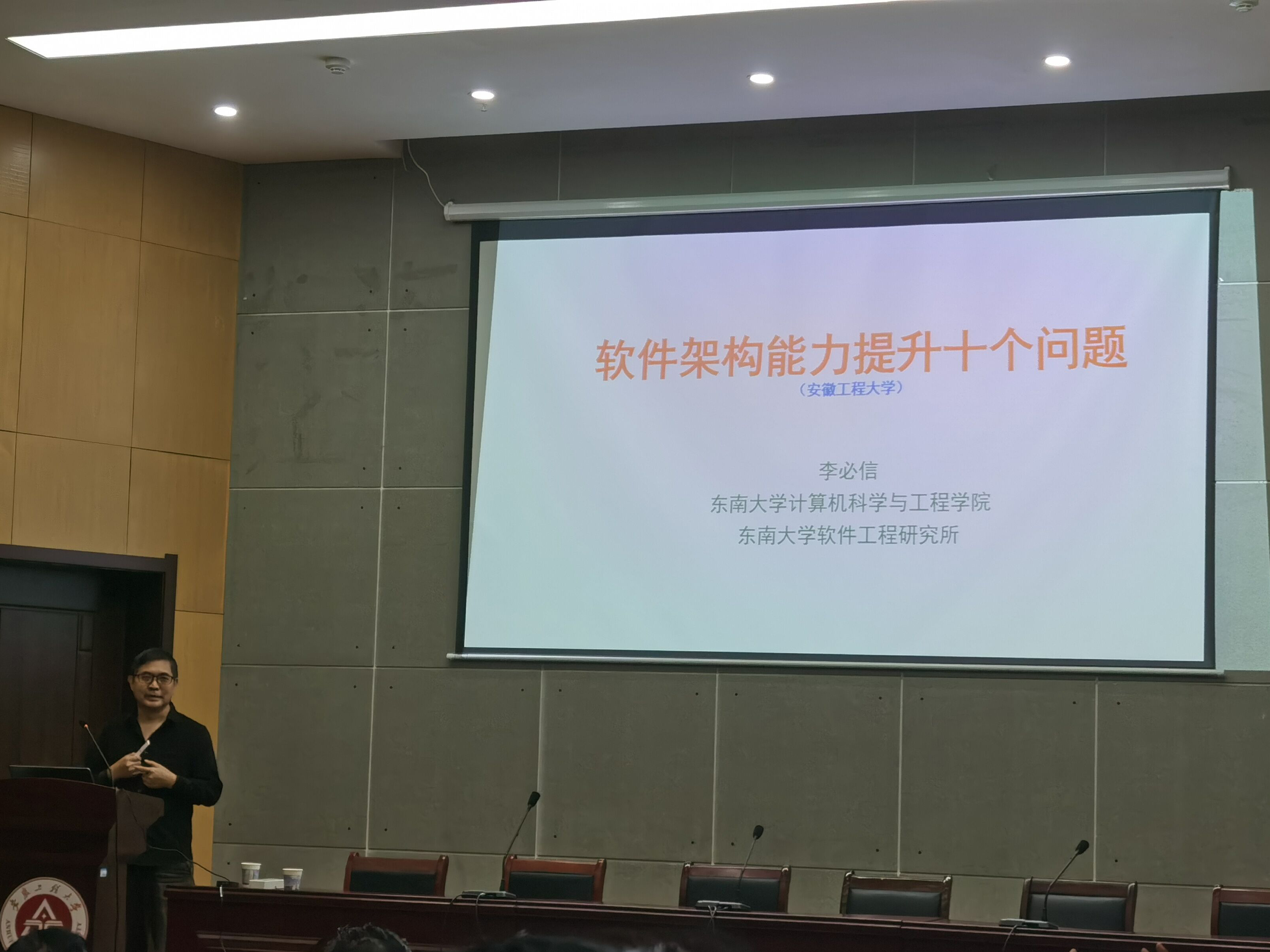 李必信教授以《软件架构能力提升的几个关键问题》为题,围绕软件架构(也称软件体系结构software architecture)的能力提升的几个方面展开介绍,重点介绍对软件架构的理解和做法以及企业合作应用情况。