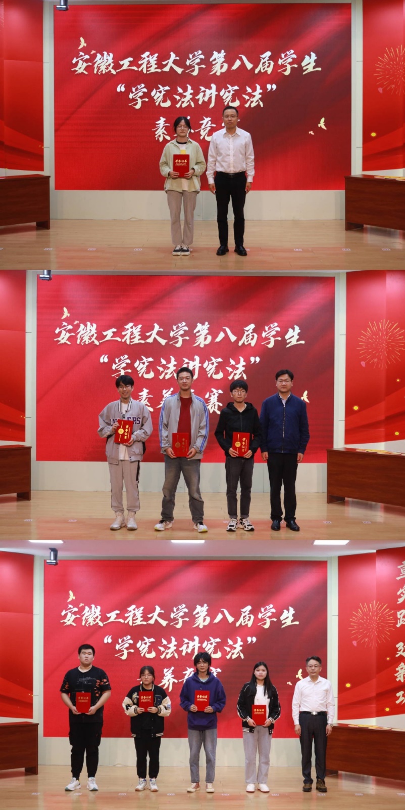 本次大赛由校团委、校法律协会主办,人文学院团委承办,旨在全面学习贯彻党的二十大精神,深入学习贯彻习近平法治思想,推动青年大学生宪法学习宣传教育常态化长效化,落实好安徽省教育厅关于开展第八届全省学生“学宪法讲宪法”活动的通知要求。比赛吸引了来自全校各学院1000余名学生报名,经过线上初赛比拼,设计学院、人文学院、数理与金融学院等8支队伍挺进决赛。决赛采用积分制,设置“逐鹿群雄”“王者之战”“问鼎冠军”“绝地求生”四个环节。竞赛中,各参赛选手冷静思考、迅速作答,展示出扎实的法律知识基础、良好的心理素质、出色的仪表仪态。