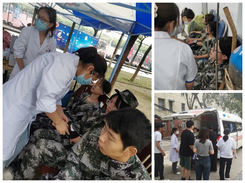 践行使命,全力做好军训医疗保障工作。根据往年工作经验和近期天气特点,9月13日至9月27日军训期间,每天安排一医一护现场值守,提前准备好军训期间需要的设备和药物,对止痛止血、防中暑、腹泻感冒、外用消毒药品、氧气等重点药物及物资提前检查备足,全体医务人员任劳任怨,主动放弃休息时间,全天候待命。军训中全程关注同学们的身体和精神状态,如有同学出现身体不适,医生及时对症处理,出现较重症状的及时转诊,确保学生生命安全,为军训撑起一片健康晴空。