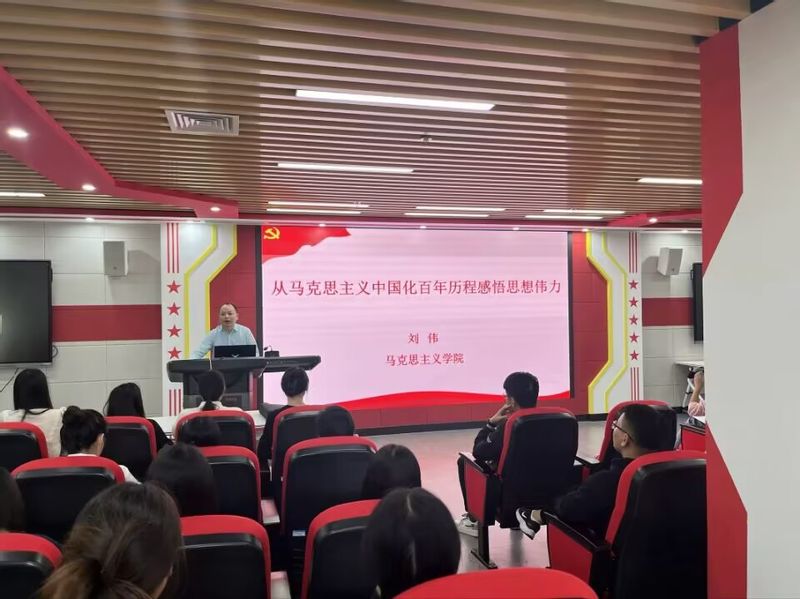 本网讯 为深入开展“抓基层强基础”专项行动,落实《安徽工程大学新生入党启蒙教育工作方案》要求,10月11日,马克思主义学院党总支书记刘伟以“从马克思主义中国化百年历程感悟思想伟力”为题,在图书综合楼1409室为研一全体新生和全体学生党员上了一堂深刻而生动的党课。