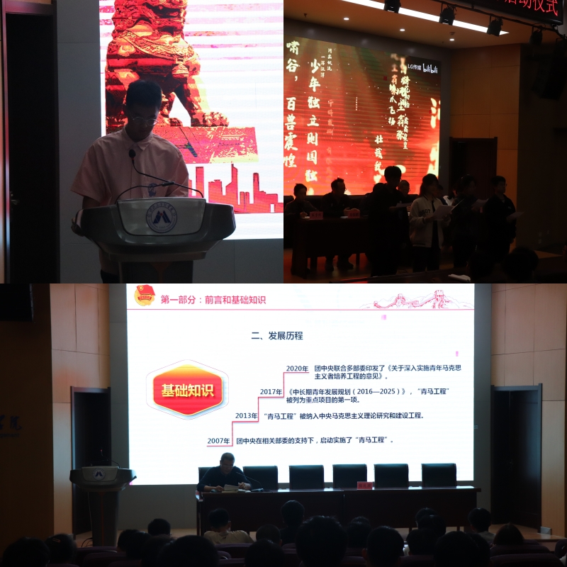 苏伟刚介绍了院第七期“青马工程”培训班基本情况及管理规定。黄贤君宣读了培训班班委及人员分组情况。学员代表给排水231郭昊飞同学在发言表示,要按照“三全六专”的育人要求,坚定政治方向,认真学习马克思主义的基本理论,积极参与各项活动,学有所获,学有所得,努力完成各项学习任务,做一名理想信念坚定的新时代青年大学生。学院文艺团的同学们在仪式上表演了富有感染力的朗诵《青春中国》。仪式在催人奋进的《光荣啊,中国共青团》歌声中结束。