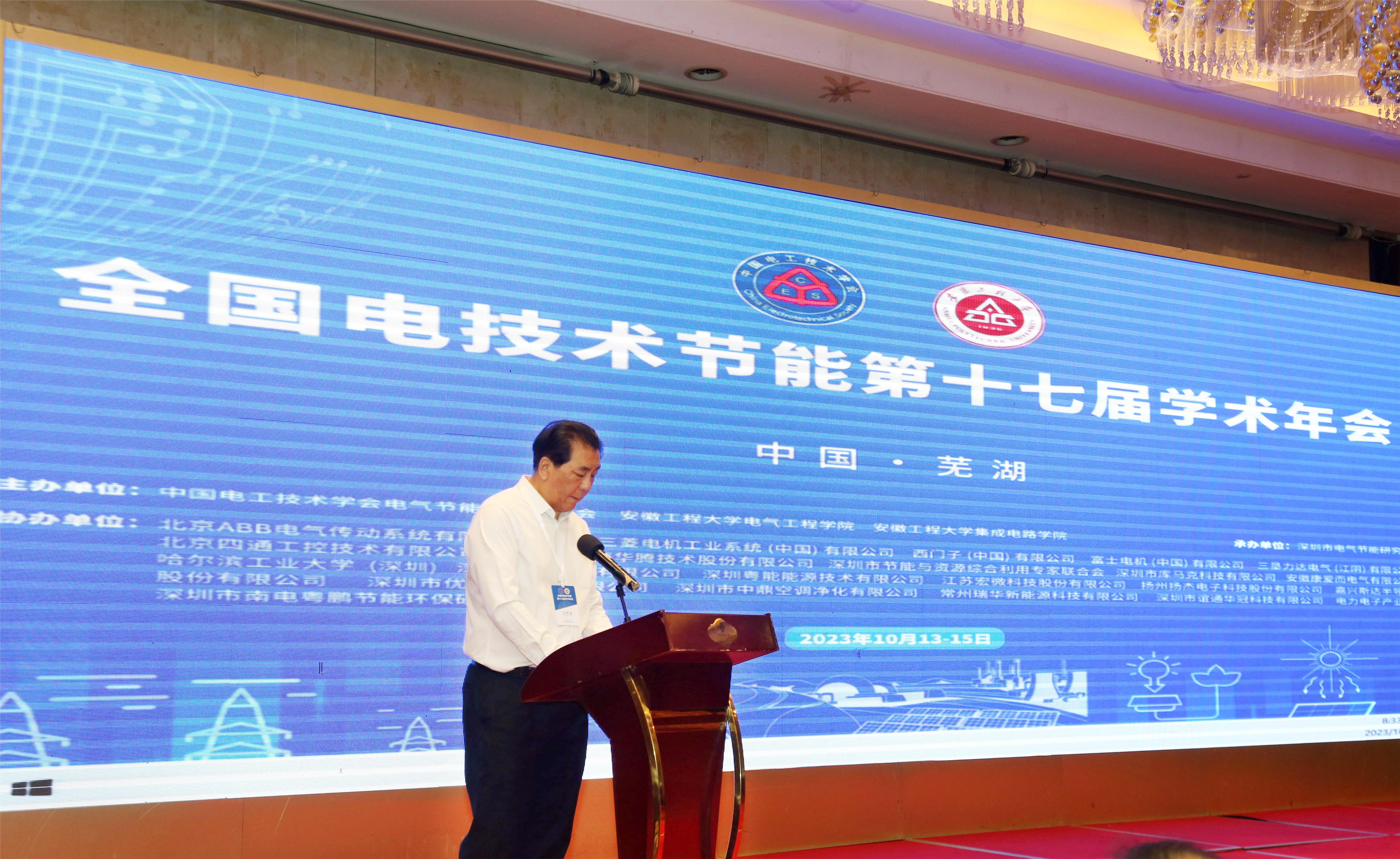 本网讯 全国电技术节能第十七届学术年会暨中国电工技术学会电气节能专业委员会八届二次理事会于10月13日至15日在芜湖举行,会议由中国电工技术学会电气节能专业委员会(以下简称“专委会”)、我校电气工程学院(集成电路学院)主办,深圳市电气节能研究会承办。专委会名誉主任、中国电工技术学会四十年荣誉称号获得者王占奎,清华大学电机系教授、俄罗斯外籍院士李永东,专委会副理事长兼秘书长孙长富,我校副校长周虹屏,电气工程学院(集成电路学院)相关负责人等出席开幕式,开幕式由孙长富主持。