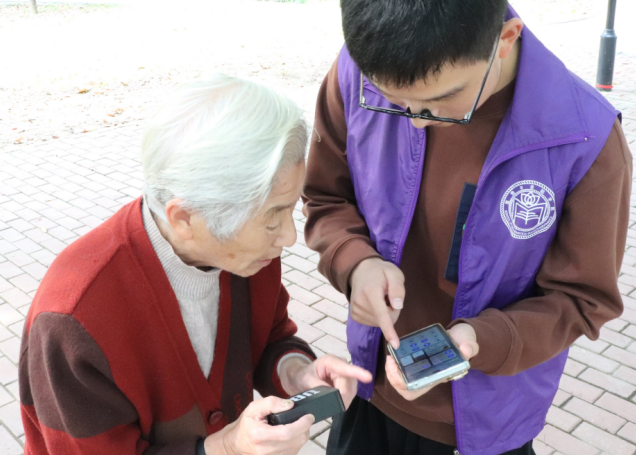 志愿者们耐心地指导老年人使用智能手机,为他们解答遇到的疑惑。一位年迈的老人因为无法使用某个软件,而急得不知如何是好,通过志愿者的帮助,成功学会了运用该软件,她感慨道:“真是谢谢你们,要不然我都不知道该怎么办了!”听到奶奶的感谢,志愿者们表示这是他们的义务,都露出灿烂的笑脸。