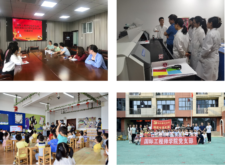 支部与院校联建。为实现党组织优势互补,党建促进业务,学院研究生党支部与国际工程师学院党支部联合开展“纺服之旅,‘研’途有你”系列活动,为实现党组织优势互补,党建促进业务,结合专业知识及特色。以“红色手帕传精神,共建友爱促和谐”为社会实践主题,结合专业技术将印制的带有红色图案以及传统文化的手帕赠送给幼儿园小朋友,借此宣传红色精神及传统文化精神。