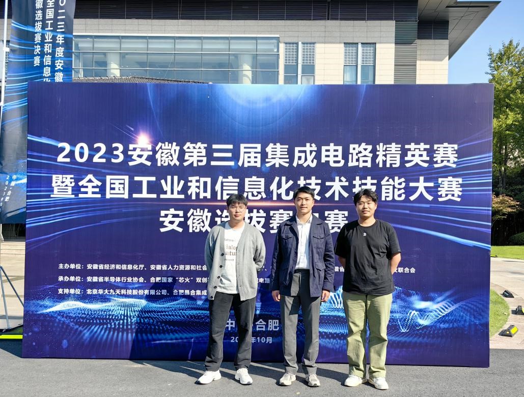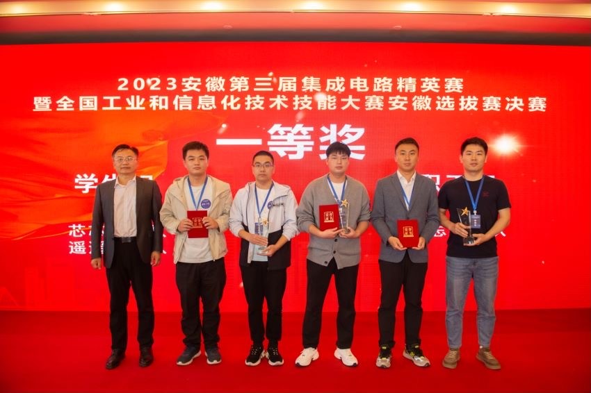本网讯 10月22日,由安徽省经济和信息化厅、安徽省人力资源和社会保障厅、安徽省教育厅、安徽省总工会、共青团安徽省委员会安徽省妇女联合会主办,安徽省半导体行业协会、合肥国家芯火双创平台、安徽大学集成电路学院承办的安徽省第三届集成电路精英赛暨全国工业和信息化技术技能大赛安徽选拔赛决赛在合肥市磬苑宾馆举行,共有来自全省13所高校38支队伍参加了本次决赛。