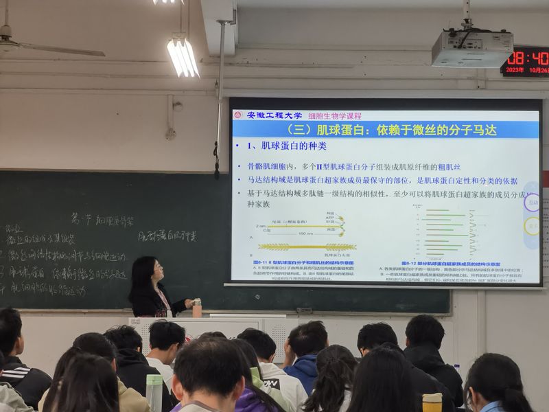 张老师讲授的内容为《细胞生物学》课程第10章。张老师通过对微丝的组成与组装、微管的动力学性质、微管结合蛋白对微管网络结构的调节等基础理论模块的讲解,结合案例分析及视频观看,强化了学生对理论知识点的理解,案例、视频紧密结合教学内容,课程设计科学。教学过程中引导学生归纳总结,体现教师主导,学生主体地位,培养学生分析、解决问题的能力。授课自然流畅,突出重点、张弛有度,积极开展课堂互动,教学效果较好。