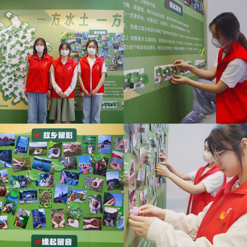 本网讯 10月16至26日,校“月季花”城市认知志愿服务团队和 “荷花竹”书香校园志愿服务团队在七教一楼设计展厅共同举办“一方水土养一方人”共创展活动。该活动同时受邀参加芜湖市繁昌区首届大学生青年文化节,并于10月12至13日在繁昌区人民体育场青年先锋艺术展厅进行展出。本次展览吸引了全校982位同学参与。同学们收集家乡土壤,共同创作展品。588份土壤、326条留言、452份反馈问卷,通过1430张图片集中展示。