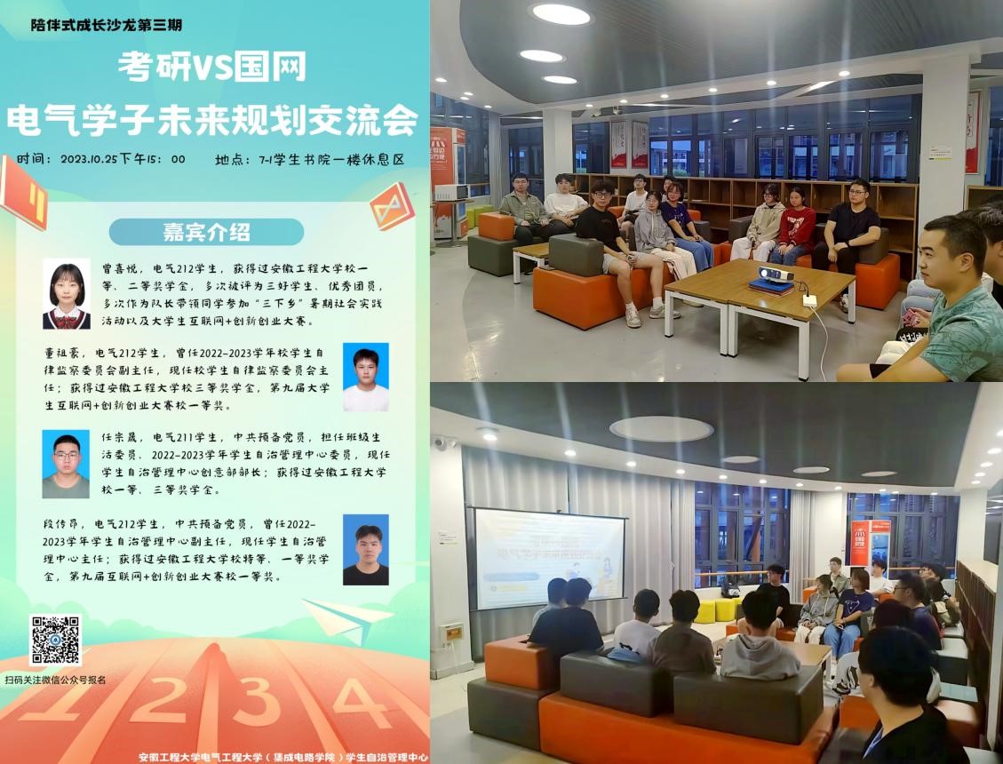 这次沙龙活动,有助于同学们树立正确的就业观,也使得同学们对自己的未来规划有了新的认识,对未来选择考研还是国家电网就职的问题进行了深入思考。