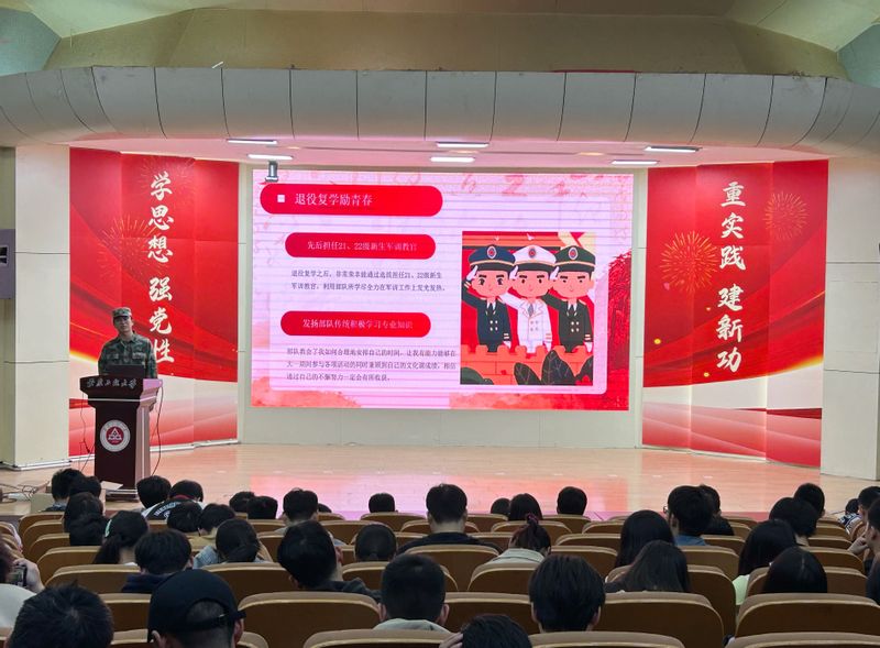 学校退役复学学生王凯分享了自己丰富多彩的军旅生活和参军入伍的心得体会,他鼓励与会学生要勇于追梦、敢于圆梦,做一个有梦想有追求的中国青年。