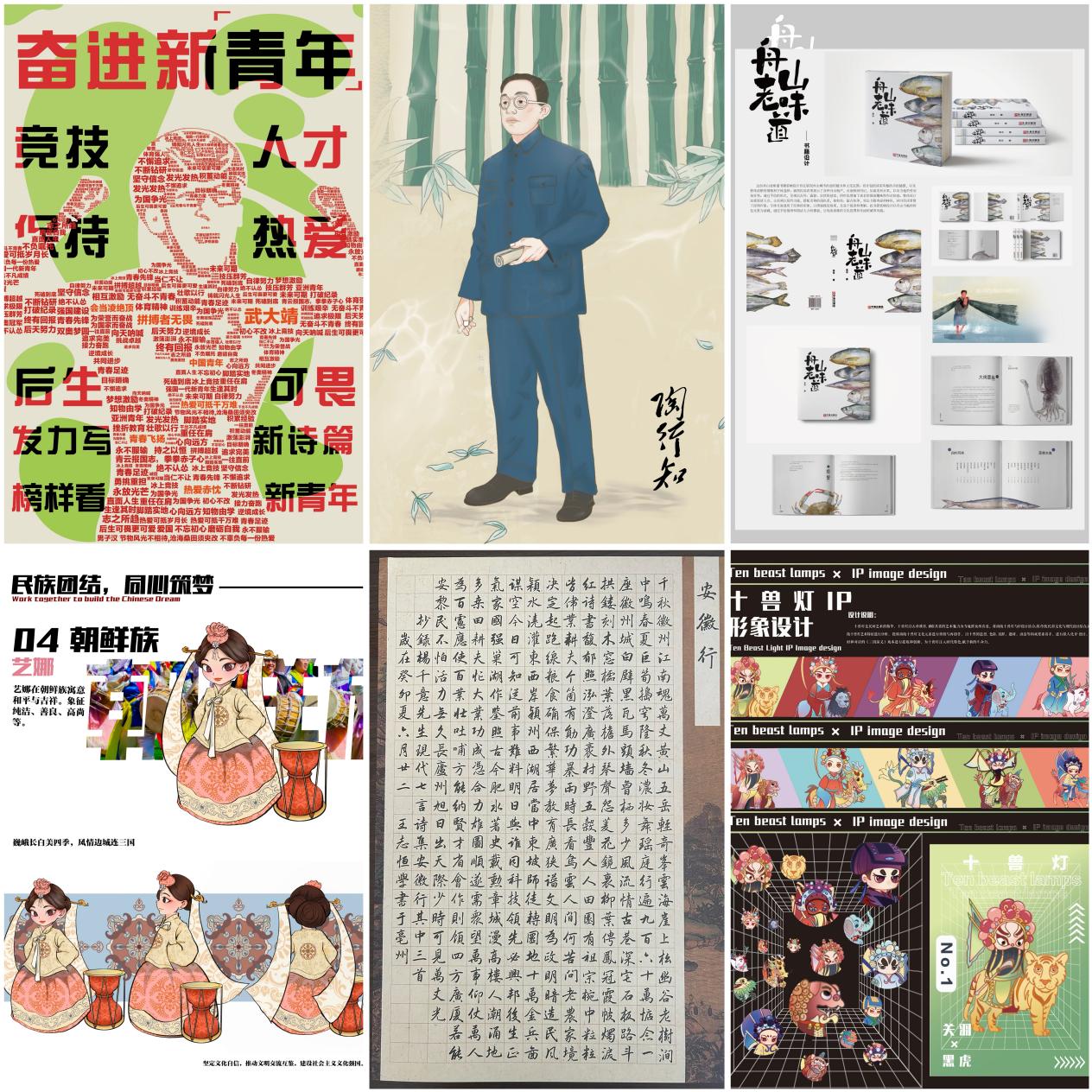 经过层层选拔,我校报送作品脱颖而出,荣获一等奖8项、二等奖5项、优秀创作奖1项。戏剧《启承》以两代缉毒警察烈士人物为原型进行创作改编,赞扬缉毒警察的无私奉献品质;《水龙探花 涧倾心工坊 沉浸式江南美闲风情村安徽芜湖市南陵县涧滩村乡村设计实践策划书》以芜湖市南陵县何湾镇涧滩村为实践基地,从“风物美”“生态美”“与民为乐”三个角度打造沉浸式文旅体验综合体。设计作品《青铜趣》《同心共筑中国梦》《徽州名人插画美术设计》《十兽灯IP形象设计》《看青年榜样,学进取品格》《舟山老味道》,书法作品《安徽行》,独唱《再看一眼亲人》,群舞《那一束光》,徽剧《贵妃醉酒选段》,美育改革创新案例《厚植沃土 久久为功——加大高校经典阅读的培育力度》等获奖作品均紧紧围绕主题,展现了中华传统文化和安徽地方特色。