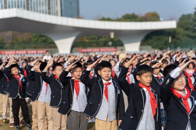 本网讯 为创新大中小思政课一体化建设实施路径,10月30日清晨,我校国旗护卫队赴芜湖市中江小学,与该校师生齐聚操场,举行升旗仪式。