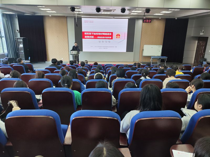 洪啸以“新形势下如何用好网络语言政策-网络信息内容把握”为题,从国家、社会、以及个人三个层面就新形势下如何把握网络信息内容做了阐释。针对网络领域的突出问题,他详细介绍了网络信息的种类、载体、甄别,以及践行网络安全的核心原则等,提醒同学互联网不是法外之地。此次讲座面向同学们宣传了网络安全理念、普及了网络用语安全知识,使网络安全理念深入人心,深刻认识到网络工作的重要性,有助于营造我校风清气正的网络生态环境。