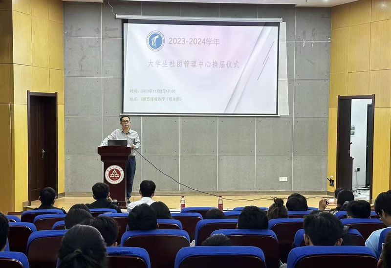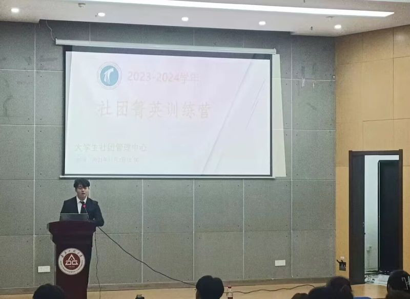 本网讯 11月3日,校团委在C座五楼报告厅举办2023至2024学年社团菁英训练营,校团委副书记周海林、第十九届校团联会主席团成员、第一届大学生社团管理中心全体成员及80余名学生社团负责人参加活动。
