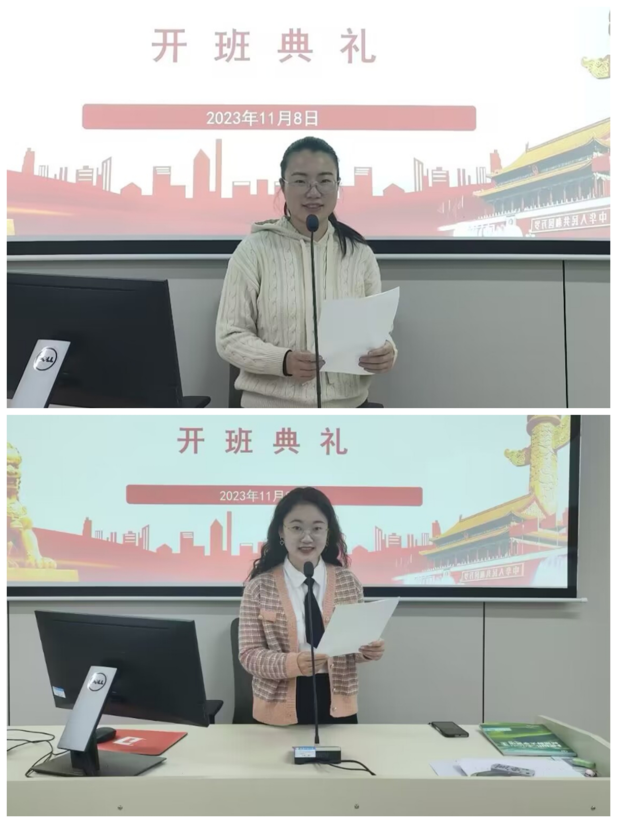 开班典礼在庄严肃穆的国歌声中拉开序幕。张君、陈小庆分别介绍了培训班教学内容、组织纪律、考核办法和管理要求。学员代表顾悦悦、倪亚茹分别代表预备党员和发展对象发言,表示将端正学习态度,珍惜培训机会,严格要求自己,认真学习思考,不断提升政治素养。