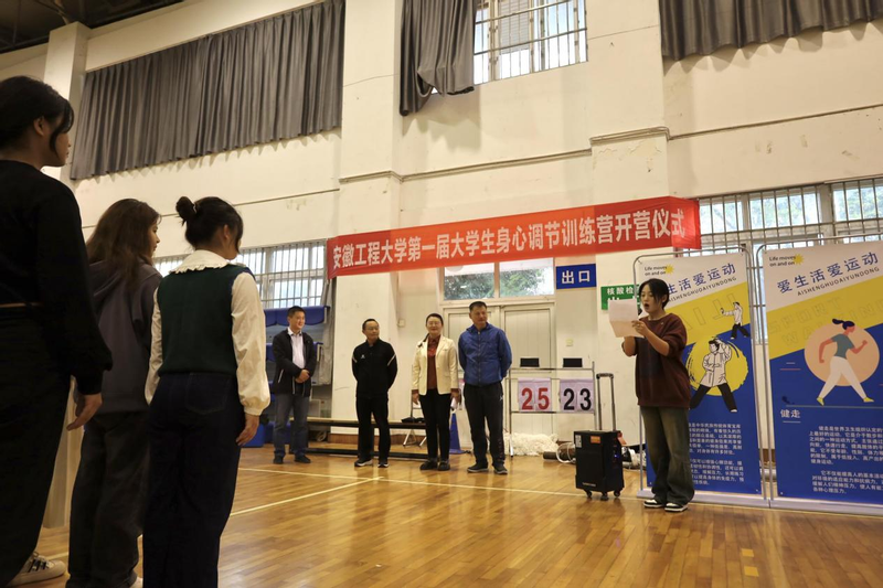 开营仪式上,金艾裙致开营辞。她指出“促进学生身心健康、全面发展,是党中央关心、人民群众关切的重大社会问题”,身心健康是同学们成长成才的重要条件;希望同学们在训练营中都能度过一段美妙的时光,收获一份属于自己的健康与快乐!训练营优秀学员刘盈盈代表营员发言。校武术队现场展示训练营项目。杨善祥代表主办方宣布安徽工程大学第一届大学生身心调节训练营开营。