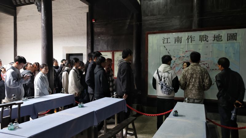 实践教学第二站,泾县云岭新四军军部旧址。这是全国首批重点文物单位、全国保存最完整的革命旧址群之一,也是中国近现代八大重要史迹之一。在讲解员的悉心讲解和带领下,学生们更好地了解了当时在叶挺、项英领导下,新四军将士活跃在大江南北,英勇抗敌,创建了众多抗日根据地等这一段历史。