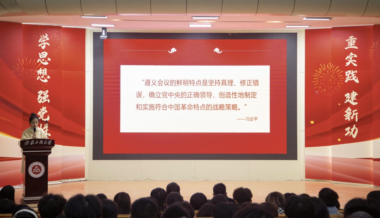 活动中,马克思主义学院许梦宇、陈奕含同学分别围绕“遵义会议——实现伟大历史转折”和“实现中华民族伟大复兴的中国梦”进行示范宣讲。