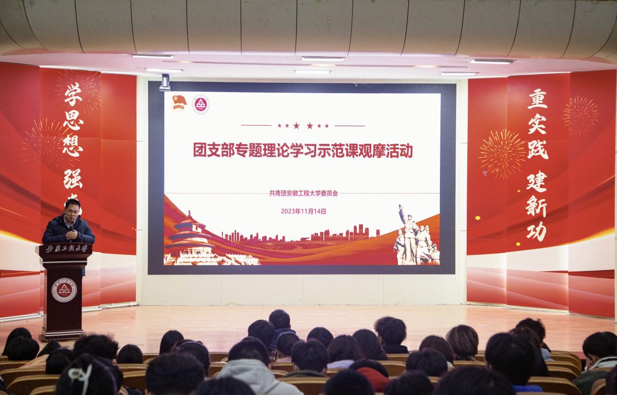 本网讯 为进一步促进团支部专题理论学习的规范化,提高学习实效,11月14日晚,校团委会同马克思主义学院在学术报告厅举办团支部专题理论学习示范课观摩活动。马克思主义学院副院长李海涛、校团委副书记周海林、马克思主义学院教师夏雨清出席活动,马克思主义学院学生代表、2023级新生各班级团支部书记以及校青年讲师团成员参加此次活动。活动由校团委理论宣传部部长胡奕雅主持。