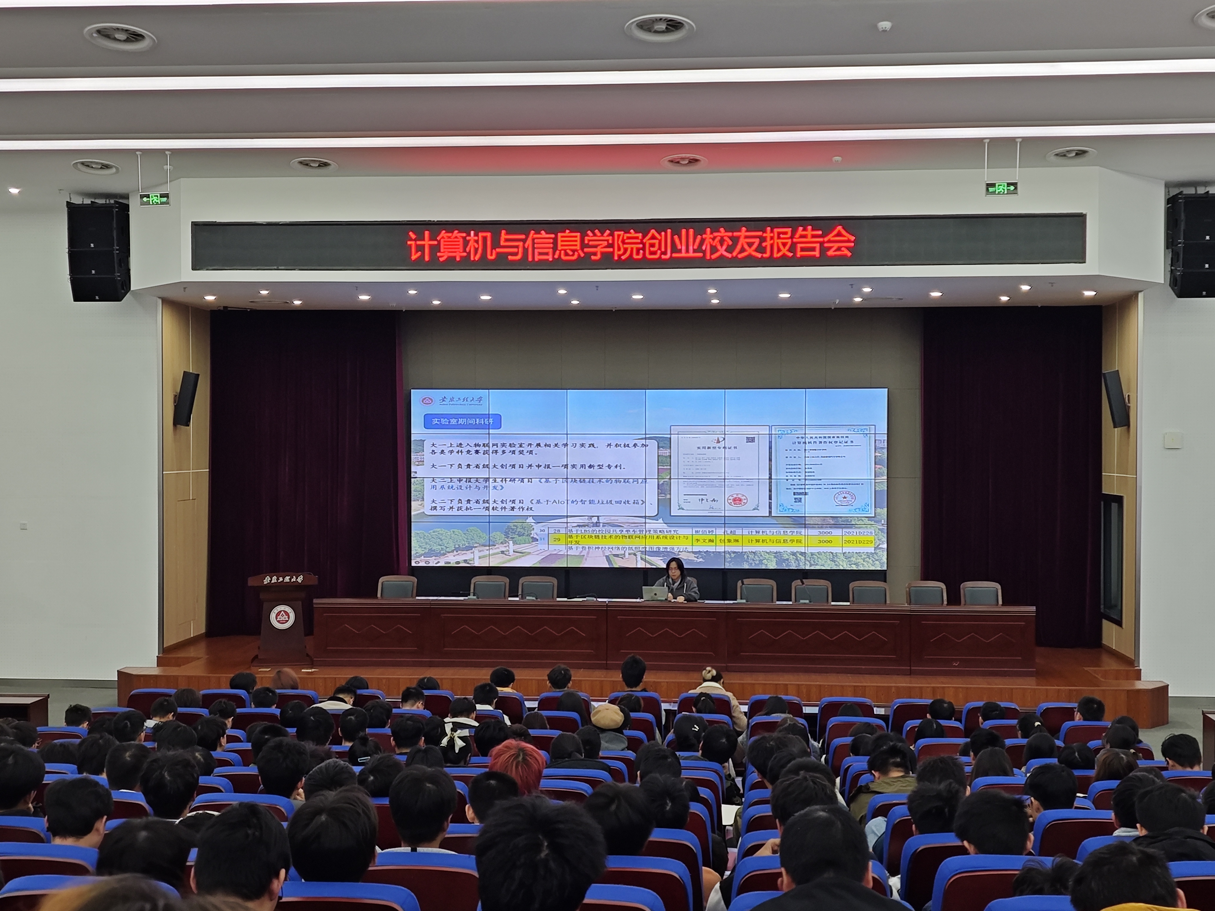 本网讯 为发挥优秀校友的引领榜样作用,帮助新生做好大学生涯规划设计,引导学生树立正确的就业观,激发新生对双创精神的兴趣,11月15日,计算机与信息学院在图书馆5楼报告厅开展了创业校友报告会。本次报告会邀请创业校友李文瀚为学院同学们分享个人创业优秀事迹,院团委书记吕寅主持,400余名学生参加了报告会。