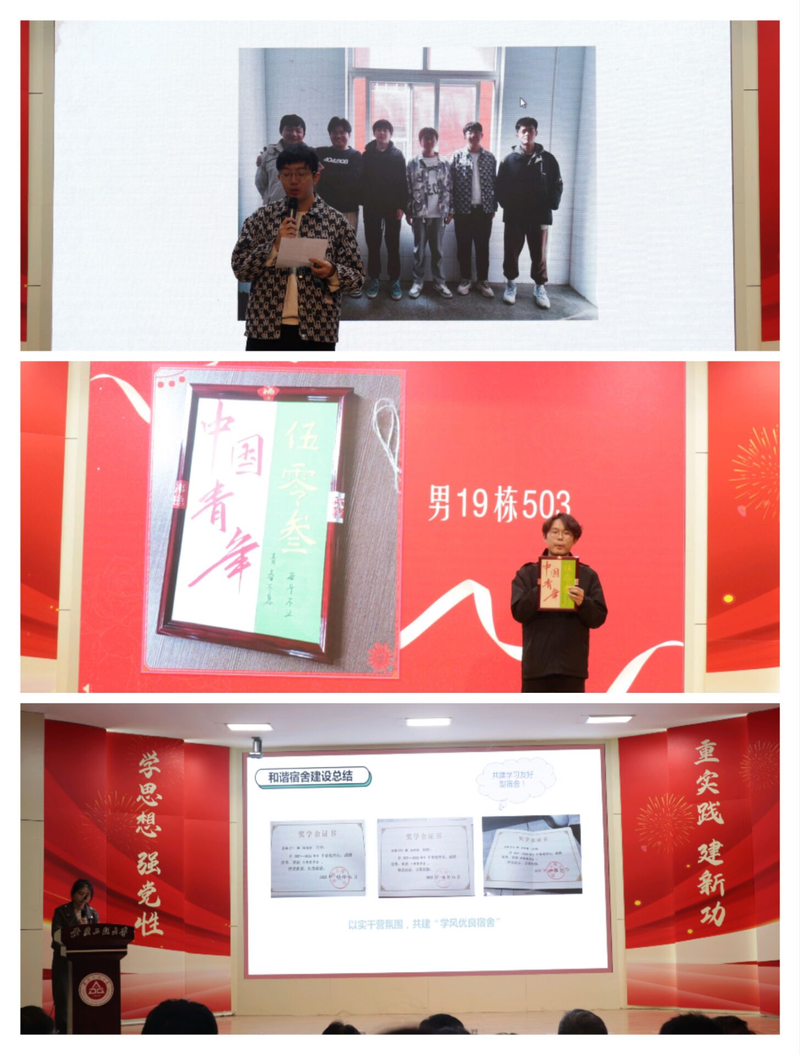 颁奖结束后,区块链221班朱润甲和金融212班方东丽代表王者宿舍同学分享了“和谐宿舍”创建心得,他们认为宿舍创建,并不仅仅是指安全整洁的环境,更是一种生活态度和团队合作精神的体现,每个人都应该相互理解、相互帮助,共同营造一个良好的宿舍环境。