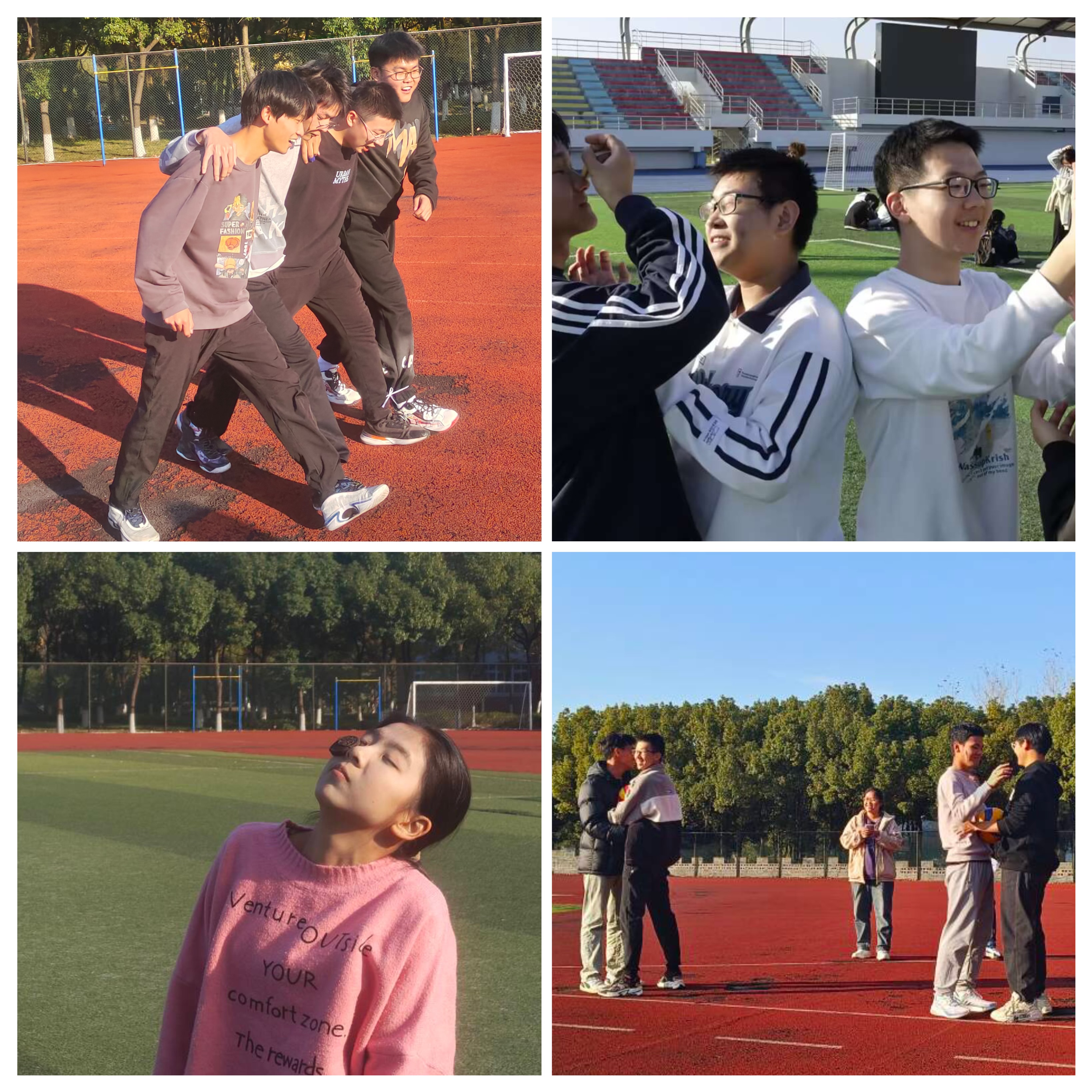 本次趣味运动会项目众多,丰富有趣,有趣味接力、美食大作战、球球大作战、四人五足、你画我猜等一个个充满趣味的游戏运动关卡,参赛同学尽力完成每一项项目,全身心投入,班级同学自发组织拉拉队为参赛队员加油呐喊。比赛期间加油声、呐喊声此起彼伏,赛场气氛激烈而又轻松愉悦,整个操场成为欢乐的海洋,大家在欢乐的气氛中度过愉快的一下午。