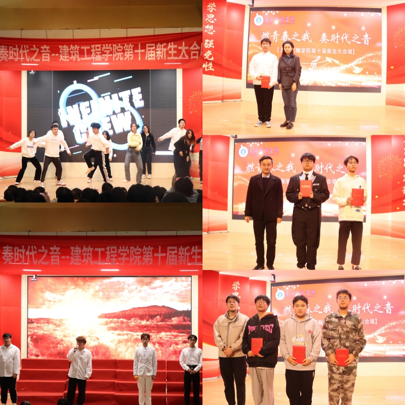 学院2023级6个新生班级参加本次比赛。比赛现场,同学们以饱满的精神面貌、高涨的热情、深情的歌声,抒时代豪情。土木231班同学身姿挺拔、意气风发,为我们演唱《我的中国心》表达对祖国不解的情怀,深藏着一颗依恋之心;土木232班一曲《歌唱祖国》表达了对祖国深深的爱恋,展现百年风雨洗礼,始终不忘初心,牢记使命,坚定不移跟党走;建筑231班同学带来的合唱《团结就是力量》歌唱祖国歌唱党,力量无穷震天扬,这力量承载风帆必胜的希望;工程231班同学合唱《少年中国说》表达了青年有理想、有信念、有担当,勇敢面对挑战,不怕困难,不畏艰险的豪情万丈;土木233班同学们倾情演唱《龙的传人》讲述了国人奋发图强,江河岸,巨龙醒的历史时刻。给排水231班带来歌曲《强军战歌》表达新时代有志青年应积极投身国防建设,开启军旅生涯的壮美诗篇。