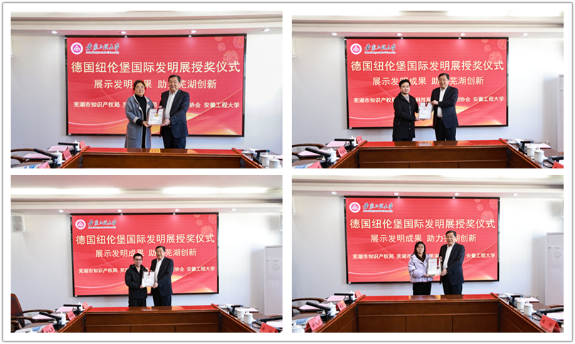 会上,芜湖市发明协会会长汪奇燕介绍了第75届德国纽伦堡国际发明展筹备、参展、参评等情况,重点祝贺并表扬了此次安徽工程大学的突出成果与贡献。芜湖市委副秘书长刘兴荣宣读了中国发明协会贺信,中国发明协会对芜湖市获得的殊荣表示了热烈祝贺,充分展示了芜湖创新之城的魅力。高登榜对此次获得获奖代表进行了授牌,表示了祝贺并寄予了厚望。