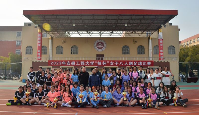 本网讯 11月29日,由校团委、体育学院主办的2023年安徽工程大学“校杯”8人制女子足球赛在校第一田径场落幕。体育学院党总支书记杨善祥、副院长谢叶寿、校女足主教练卜保国为获奖队伍及个人颁奖。