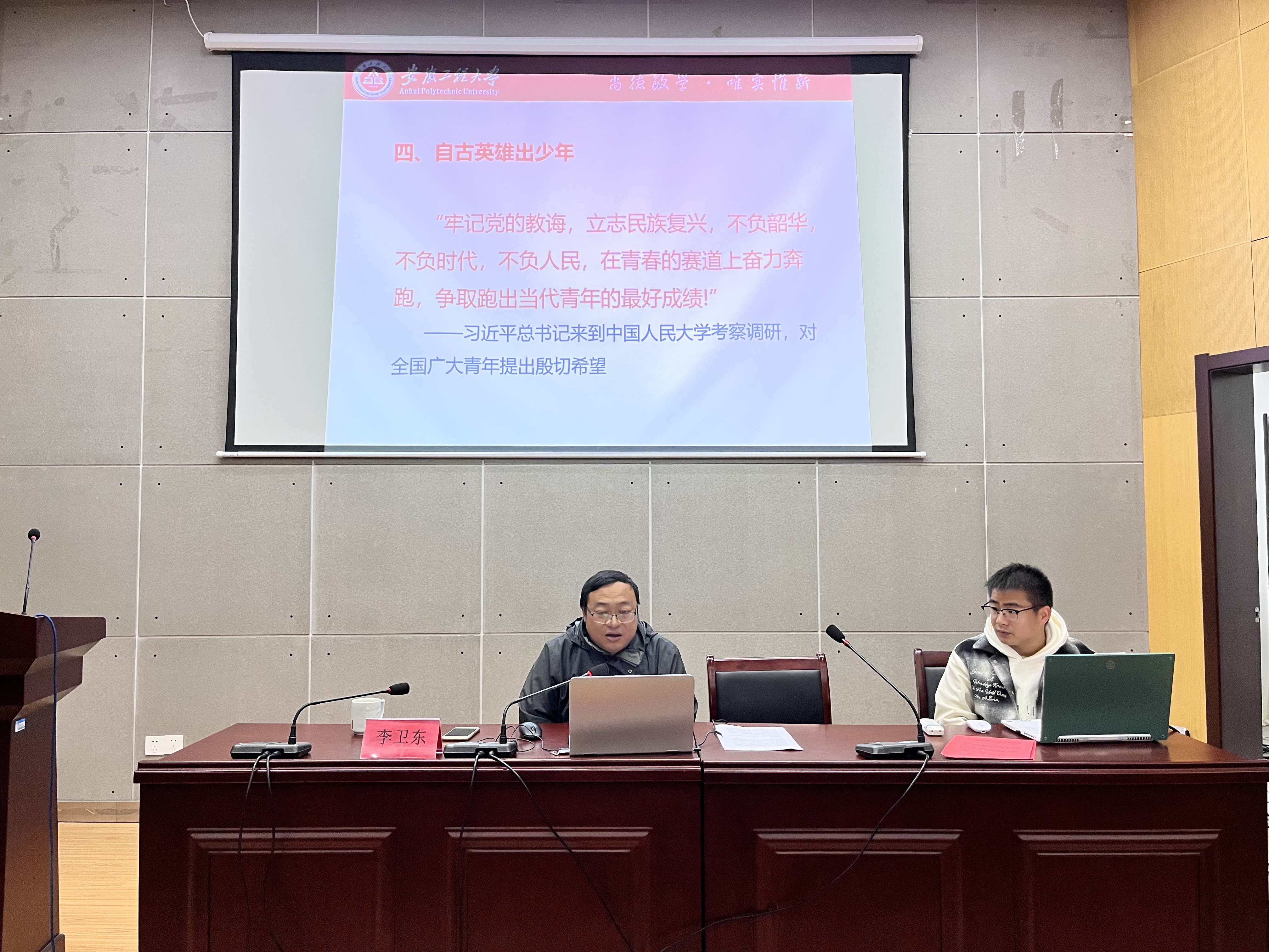结业典礼开始前,李卫东以“习近平总书记的‘青年观’”为主题做专题党课,围绕“坚定理想信念”“践行初心使命”等方面引导学员树立正确的入党动机,他结合当前国际形势,和同学们交流自己的感受,同时对同学们寄予厚望,表示“青年生逢其时,重任在肩,要奋勇争先,顽强拼搏”。