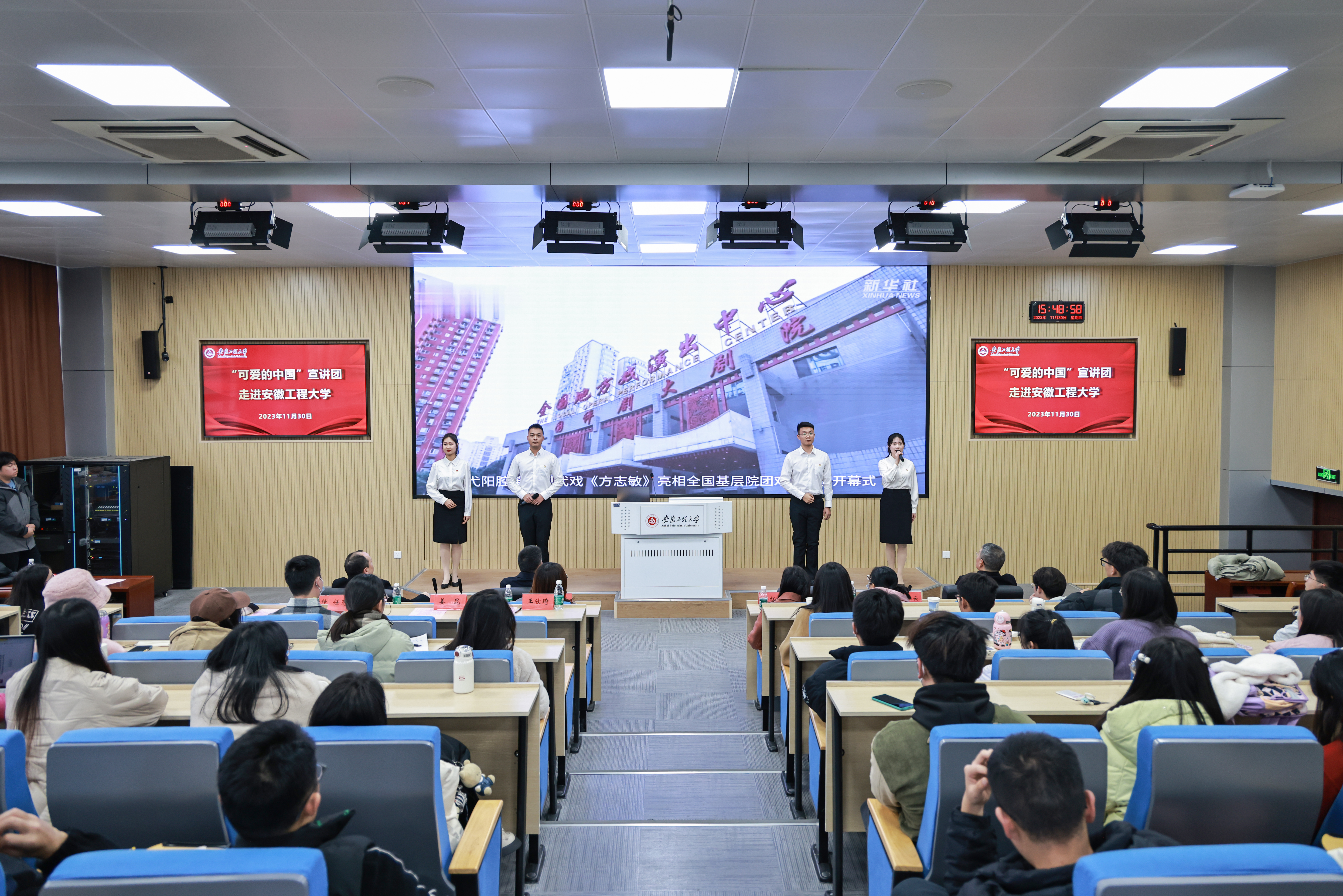 校党委常委、宣传部(统战部)部长孙浩然在致辞中指出,江西省上饶市弋阳县是闽浙赣革命根据地的核心区、人民英雄方志敏的故乡,“可爱的中国”宣讲团以“为了可爱的中国”为主题,结合有关方志敏烈士的珍贵影像和图文资料,对方志敏革命精神进行了全面深刻的解读,鲜活呈现了方志敏同志光辉的英雄事迹、崇高的革命精神和坚定的革命意志,给我们上了一堂生动的“五史”思政大课,也为我校理论宣讲队伍上了一次示范课。