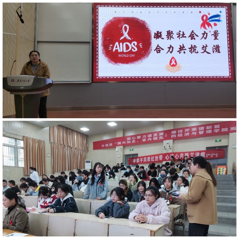 开设防艾知识课堂,普及预防措施。校医院邀请鸠江区疾控中心专家来校开设防艾知识小课堂,从专业的角度,介绍了艾滋病的起源、发病机制、危害、预防和阻断措施。并和现场同学互动问答,增进了同学们对艾滋病的认识与预防意识。