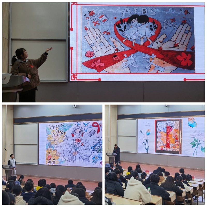 设计学院副教授齐宛苑老师对活动点评。她表示,参赛作品表现手法丰富,每位同学通过自己设计手绘海报,展现了艾滋病的危害、传播途径和预防措施,倡导消除歧视、关爱艾滋病患者。她提醒同学们科学预防,远离艾滋,维护自身和他人健康。