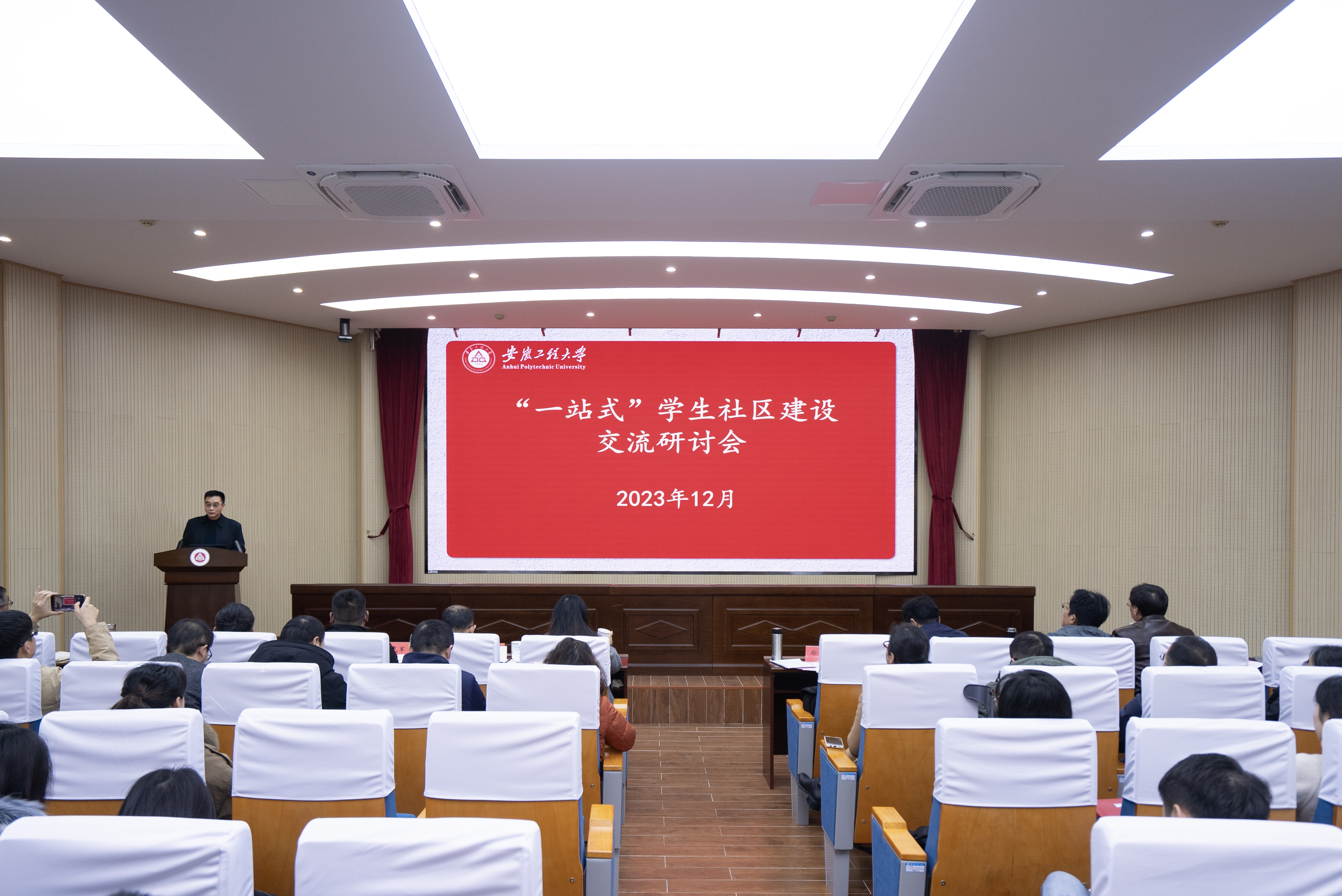 本网讯 12月1日,学校在A座104会议室举行学院“一站式”学生社区建设交流研讨会,旨在贯彻落实教育部高校“一站式”学生社区综合管理模式建设工作推进会会议精神和省委教育工委、省教育厅关于“一站式”学生社区建设工作部署安排,落实学校“三抓”工作要求。校党委常委、副校长郑健出席会议。会议由学生处处长黄炜主持。