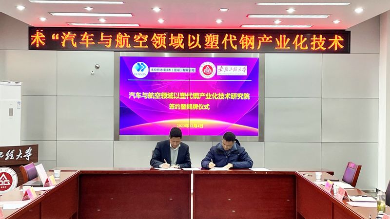 本网讯 12月4日,我校与本松新材料(芜湖)有限公司共建的“汽车与航空领域以塑代钢产业化技术研究院”签约揭牌。副校长周虹屏、本松新材料(芜湖)有限公司董事长周永松出席活动。科技处、化学与环境学院相关负责人和教师代表,本松新材料(芜湖)有限公司相关人员参加活动。