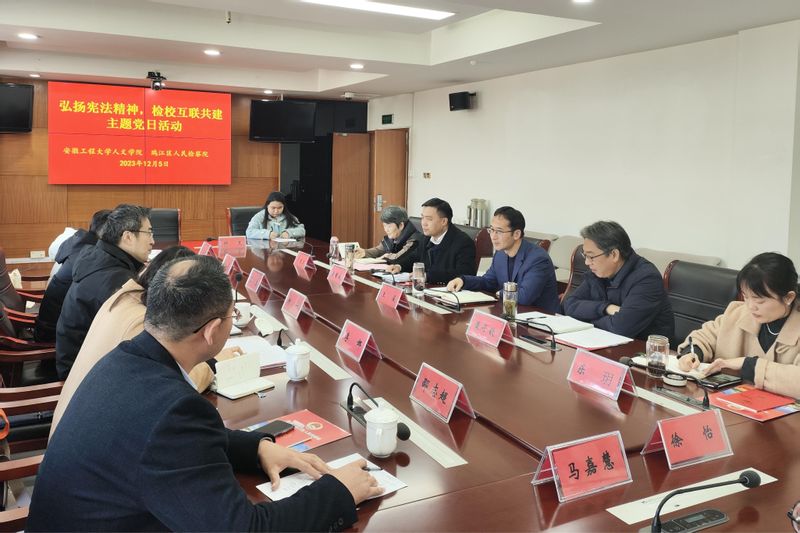 本网讯 为贯彻落实习近平法治思想和习近平总书记关于宪法法治教育的重要指示精神,弘扬宪法精神,推动校检合作迈上新台阶,12月5日,人文学院党委书记刘一一行赴鸠江区人民检察院开展互联共建主题党日活动,并看望实习学生。鸠江区检察院党组书记、检察长王俊,检察院领导班子成员,学院副院长、组织员、法学系专业教师代表、辅导员代表参加活动。活动由检察院党组副书记、副检察长黄子钦主持。